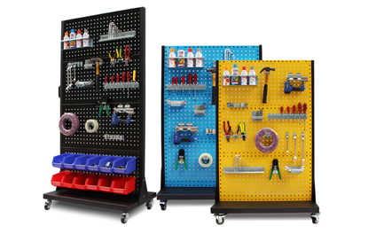 配置:配2塊百頁(yè)掛板,4塊方孔掛板,底部可配兩定向兩萬(wàn)向帶剎車輪。